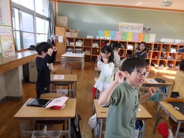 2年生の2時間目は国語の授業でした。「動物カードをつくろう」の学習です。自分の好きな動物について調べ、その動物の秘密をまとめていきます。パンダやクラゲを調べた子たちはカードが完成したようです。「パンダは意外となまけ者でした」「クラゲは泳げないけど海水に流されてえさを食べる」「ハブクラゲが動物で一番強い毒でびっくりした」などの感想を書いていました。