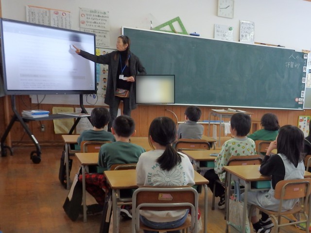 2年生の3時間目は国語の授業でした。「かさこじぞう」を学習したり、「昔話紹介カード」を書いたりして昔話について学んできました。今日はまとめとして、みんなで昔話を視聴しました。電気を消し、カーテンも閉めて真っ暗にして、まるで映画館のような雰囲気の中でじーっとお話を聞いていました。「一平と貧乏神」という昔話、知っていますか?