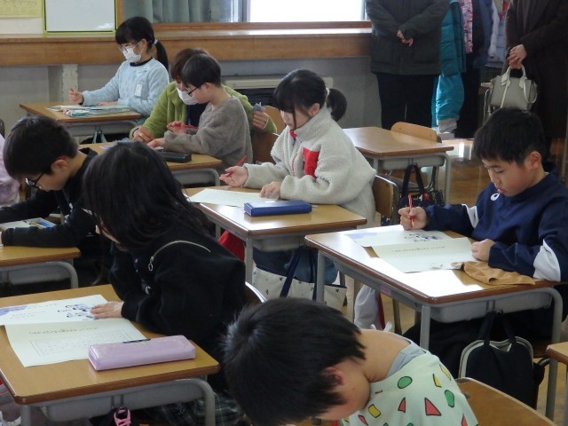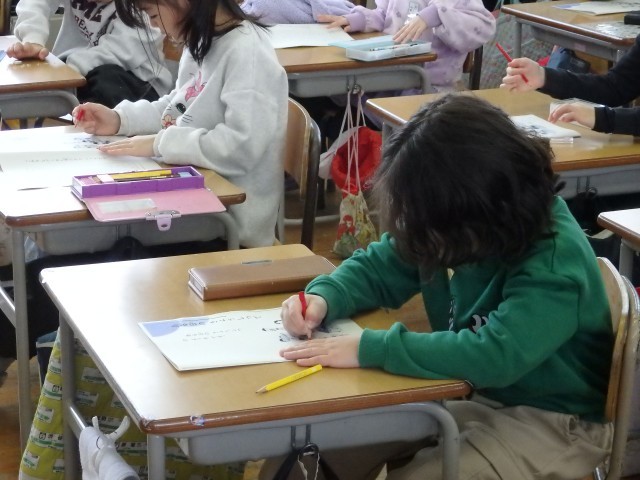 2年生の1時間目は学活の授業でした。12月の生活目標「自分も友だちも大切にしよう」の振り返りをしていました。「相手を見て話を聞く」「自分の気持ちや理由を伝える」「~さんで名前を言う」などから自分でめあてを決め1ヶ月生活してきました。文章で振り返りを書いていましたが5行にビッシリと書けている子がたくさんいました。これからも、自分も友だちも大切にして生活してほしいです。