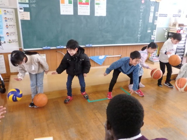 3年生の4時間目は体育の授業でした。ドッヂボールをしていました。男女問わず力強いボールを投げる子がたくさんいました。相手が投げたボールを避けるのに一生懸命で、背中を向けて逃げ回るので、先生から「ボールを見ながら逃げるんだよ!」と何度も声を掛けられていました。