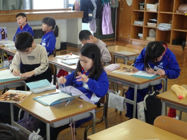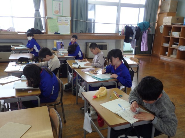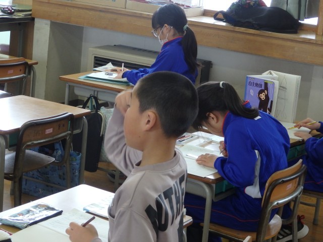 2年生の1時間目は学活の授業でした。12月の生活目標「自分も友だちも大切にしよう」の振り返りをしていました。「相手を見て話を聞く」「自分の気持ちや理由を伝える」「~さんで名前を言う」などから自分でめあてを決め1ヶ月生活してきました。文章で振り返りを書いていましたが5行にビッシリと書けている子がたくさんいました。これからも、自分も友だちも大切にして生活してほしいです。