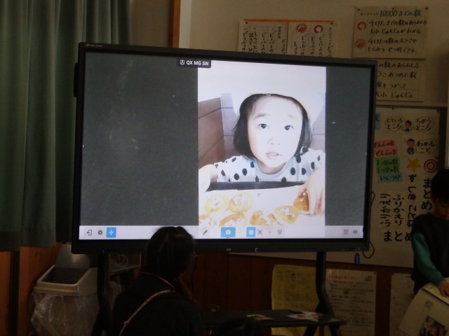 2年生の1時間目は国語の授業でした。「ことばあそびを楽しもう」の学習です。「数え歌」で出てくる「さんしょう」や「むくろじゅ」などの子どもたちにはあまり馴染みのないことばが何なのか電子黒板で写真を見たり、2,3人ずつのチーム戦でのしりとりをしたりして楽しく学習していました。