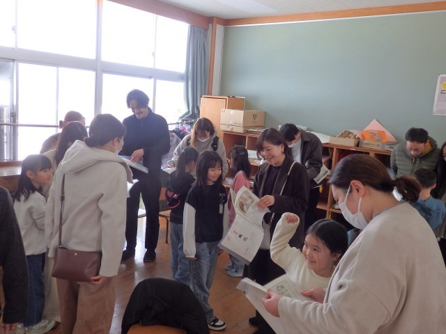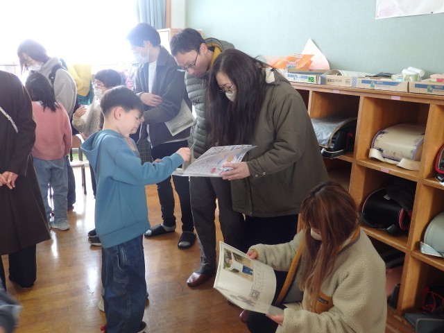 2年生は生活の「わたしたんけん」という授業で作っている「自分の歴史」の中間発表を行いました。小さい頃の写真を電子黒板で映しながら、名前の由来や小さい頃のエピソードを発表しました。名前の由来を聞いて、保護者の皆様が我が子に掛ける思いがひしひしと伝わってきました。全員の発表が終わると、作成中の「自分の歴史」をお家の人や友だちの家の人に見てもらいました。とてもうれしそうな笑顔がいっぱいでした。