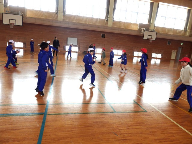2年生の4時間目は体育の授業でした。縄跳びの学習です。「大波小波」のようにして先生が大縄を回して跳んでいきます。前半は4,5人グループで手を繋いで跳びます。みんなで掛け声を掛けて、息を合わせて跳んでいました。後半は1人からスタートし、1人ずつ大縄に入っていきます。とっても楽しそうに跳んでいました。