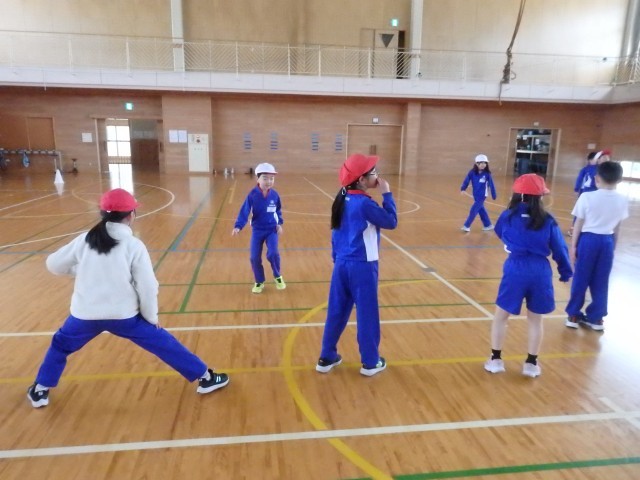 2年生の4時間目は体育の授業でした。「宝オニ」というゲームをしていました。2チームで対戦します。体育館の両脇に大きなコーンが置かれています。自分たちの陣地です。陣地の中には小さなコーンが何個かあります。これが「お宝」です。相手チームから「お宝」を奪うだけでなく、自分たちの「お宝」も守らなければなりません。相手にタッチされたらダメです。オニごっことラグビーが合体した感じでしょうか。チームワークと作戦が必要ですね。チーム内で声を掛け合いながら取り組んでいました。