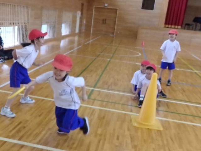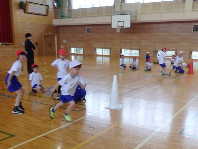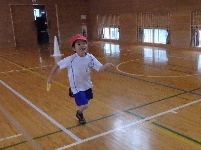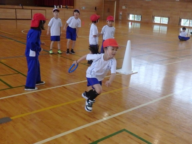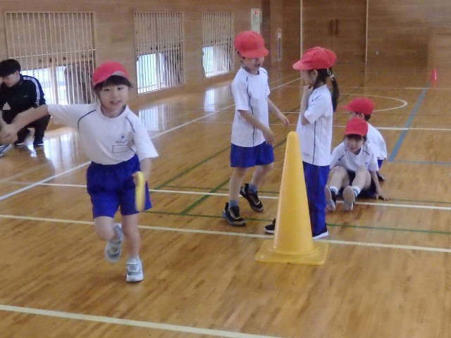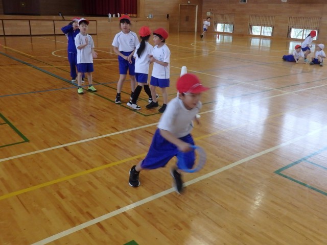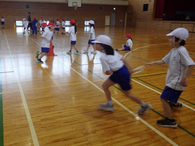 2年生の2時間目は体育の授業でした。リレーの練習をしました。まずはバトンを上手につなぐにはどうしたらいいか考えました。バトンを渡す人はリングを縦にして渡すこと、バトンを受け取る人は前を向いて「よーい」の姿勢で手だけ後ろに向けることをみんなで確認しました。そして4チームに分かれて「折り返しリレー」です。バトンは上手につながったかな?