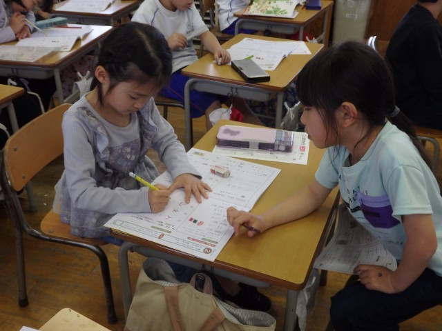 2年生の5時間目は生活の授業でした。「1年生に教えたい」の学習です。前の時間に、体育館や音楽室など1年生に教える場所について決めました。今日は班ごとで分担した場所について、どんなことを教えたらよいか話し合いました。1年生が早く学校に慣れるように、自分たちが知っていることを自分たちの言葉で教えられるといいですね。
