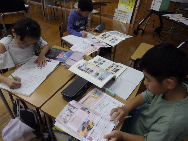 昨日の3年生の5時間目は社会の授業でした。「工場で働く人々」について調べ学習をしていました。工場ではどんな仕事をする人がいるのか教科書や資料集を読み込んだり、インターネットで検索したりして調べていました。