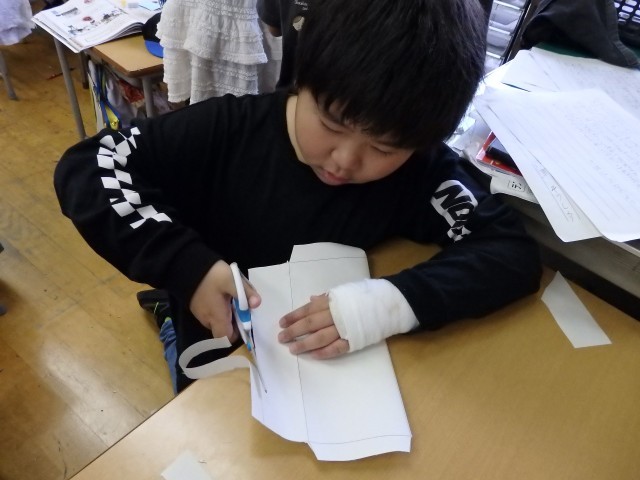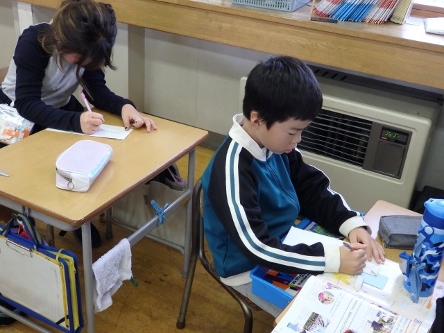 3年生の1時間目は国語の授業でした。「案内の手紙を書こう」の学習です。学習発表会にお家の人を招待する手紙を便せんに書き、封筒に入れて渡せるように準備しました。封筒は自分で手作りしました。一言添えてお家の人に渡せるといいですね。