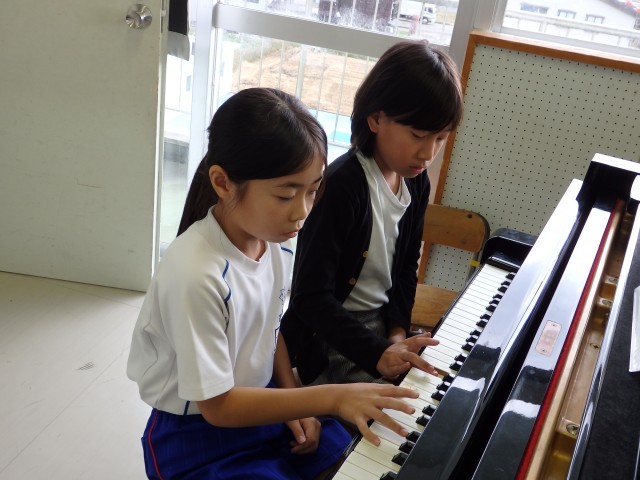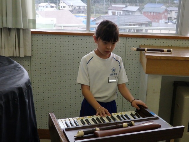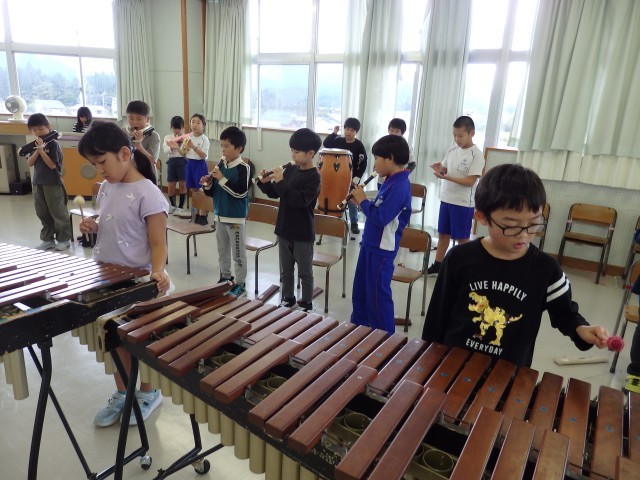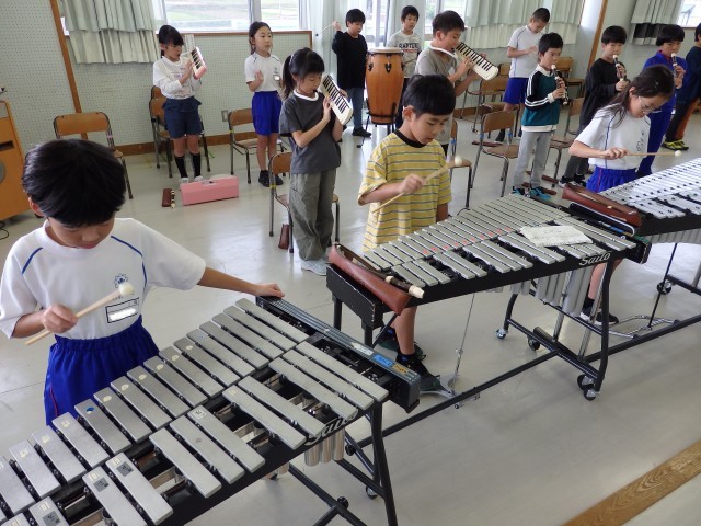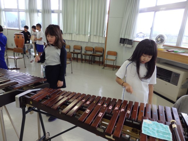3年生の2時間目は音楽の授業でした。「パフ」の演奏練習をしていました。前半はリコーダー、木琴、鉄琴、ピアノ、キーボード、太鼓などのパートごとで練習をしていました。後半から少しずつみんなで合わせて演奏する練習をしていきました。お互いにリズムや指の位置などを教え合いながら取り組んでいました。