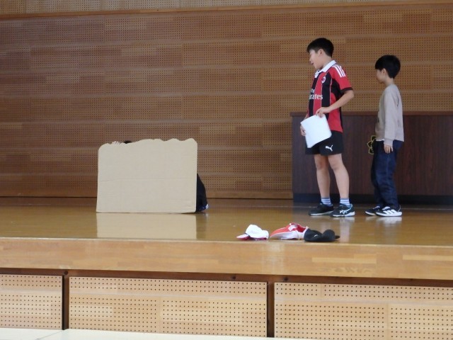 3年生の5時間目は総合の授業でした。学習発表会の準備をしていました。発表のときに使う小道具づくりです。劇の役割ごとで分担し、協力して取り組んでいました。