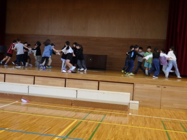 3年生の5時間目は体育の授業でした。今日から持久走大会に向けて持久走の練習です。初日の今日は体育館で走りまくりました。前半は助けオニを行いました。広い体育館を縦横無尽に走って逃げたり、追いかけたりしました。後半は赤白で分かれて「キツネ狩り」をしました。楽しみながらも、たくさん走った1時間でした。
