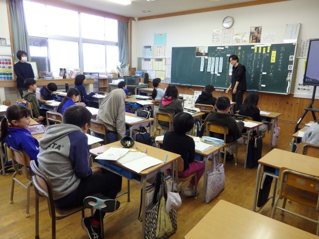 3年生の5時間目は図工の授業でした。「あの日あの時の気持ち」という絵の制作の最後です。完成して先生に提出した子は読書をしたり、お絵かきしたり、ドリルをしたりなどをしていました。終わっていない子のお手伝いをしてくれる子が数人いました。和気あいあいとした「ほんわか」ムードで過ごしていました。
