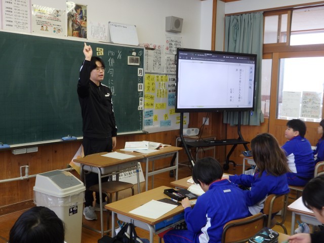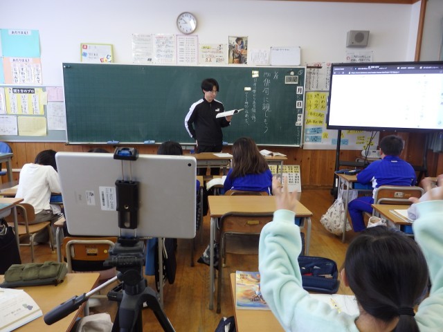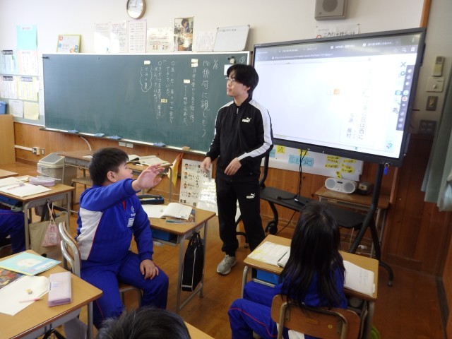 3年生の5時間目の授業、後半です。「おくびょうな豆太がなぜ(夜中に)医者を(1人で)呼びに行けたのか」を考えました。たくさんの先生が見ている中でしたが、自分の考えをきちんと発表することができました。
