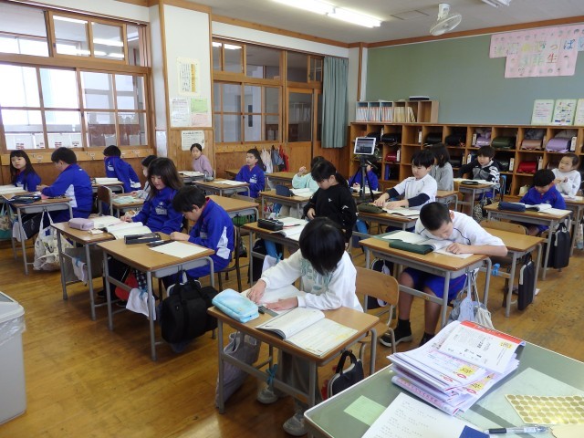 3年生の1,2時間目の様子です。昨日の国際科で作っていたクリスマスカードを仕上げたり、宿題やプリントなどの配付物を配っていました。配り係の子たちが協力しながら配ってくれていました。