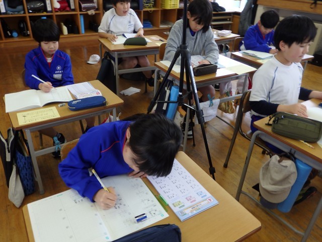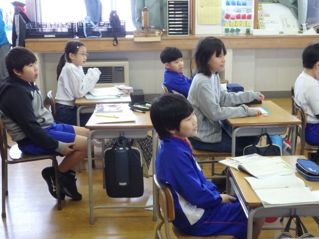 3年生の3時間目、国語の授業で「私の好きな時間」発表の続きです。ゲームをしているとき、習字をしているとき、犬の世話をしているとき、ドラムを叩いているとき、サッカーでボールを蹴っているとき、バスケでシュートが決まったとき、ピアノを弾いているときなど1人1人が「自分の好きな時間」について具体的に発表することができました。