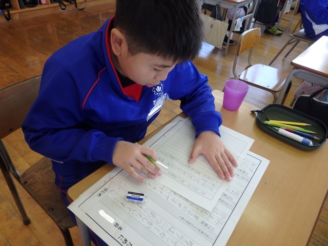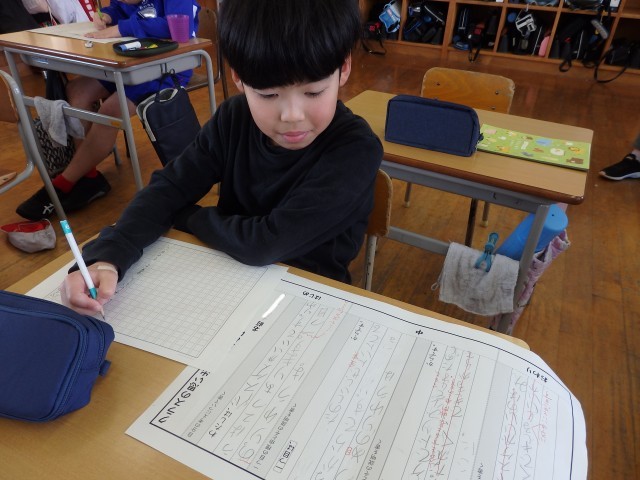 3年生の3時間目、国語の授業で「私の好きな時間」発表の続きです。ゲームをしているとき、習字をしているとき、犬の世話をしているとき、ドラムを叩いているとき、サッカーでボールを蹴っているとき、バスケでシュートが決まったとき、ピアノを弾いているときなど1人1人が「自分の好きな時間」について具体的に発表することができました。
