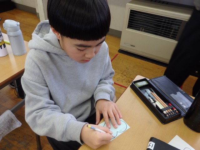 3年生の5時間目は図工の授業でした。3学期の係のポスターを作っていました。メンバーの名前、めあて、仕事内容を書いたら、イラストを描いたり文字に色を塗ったりして飾り付けをしていきました。「グラデーション付ける?」と凝っている係もありました。