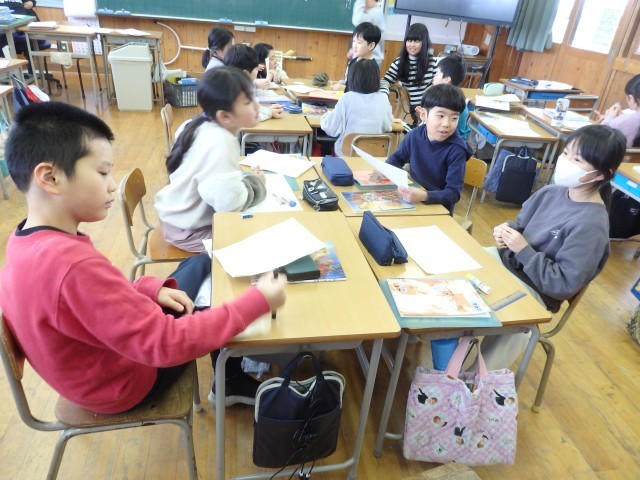 3年生の3時間目、国語の授業で「私の好きな時間」発表の続きです。ゲームをしているとき、習字をしているとき、犬の世話をしているとき、ドラムを叩いているとき、サッカーでボールを蹴っているとき、バスケでシュートが決まったとき、ピアノを弾いているときなど1人1人が「自分の好きな時間」について具体的に発表することができました。