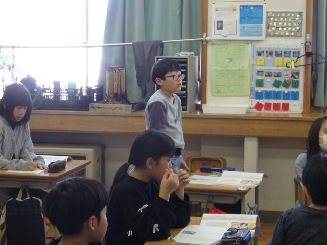 3年生の1時間目は学活の授業でした。2,3月の生活目標「感謝の気持ちを伝えよう」について「どんな場面で感謝の気持ちを伝えられるか」というテーマで話し合いを行っていました。班ごとで話し合い、その後、学級委員の子が司会をして全体で話し合いました。たくさんの人にたくさんの「ありがとう」を伝えてほしいです。