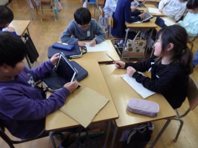 3年生の1時間目は学活の授業でした。2,3月の生活目標「感謝の気持ちを伝えよう」について「どんな場面で感謝の気持ちを伝えられるか」というテーマで話し合いを行っていました。班ごとで話し合い、その後、学級委員の子が司会をして全体で話し合いました。たくさんの人にたくさんの「ありがとう」を伝えてほしいです。