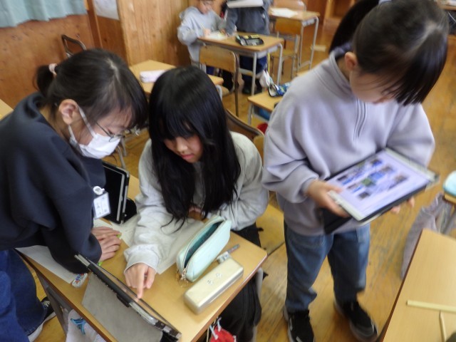 3年生の5時間目は図工の授業でした。席替えをしたようですね。紙版画の学習です。凸凹で模様が付いているいくつかの紙や毛糸などを貼り合わせて版画をします。今日は版画にする絵の下書きをしていました。タブレットで画像検索した絵を見ながら描いている子もいれば、何も見ないで描いている子もいました。トラック、日本庭園、飼っているペット、花などの絵を描いていました。「これを頑張って作るんだ」と描いた下絵を見ながら決意を語ってくれた子がいました。