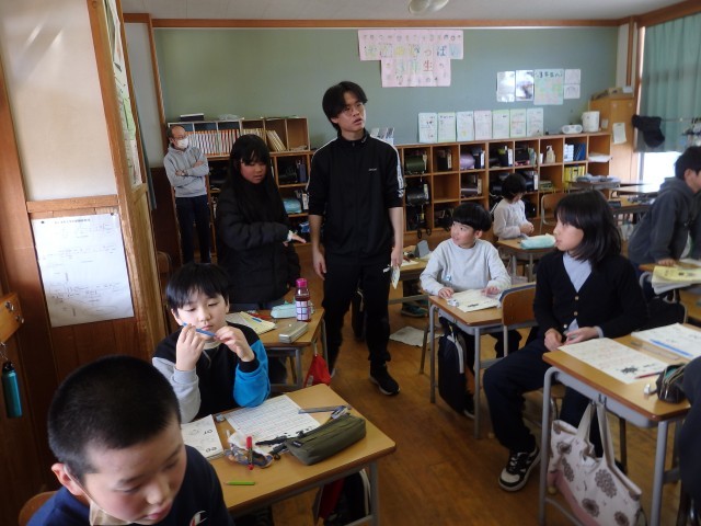 3年生の1時間目は国語の授業でした。「南魚沼市の魅力を説明しよう」という学習を国語と総合の授業をコラボして行っています。総合の授業では南魚沼市の魅力にはどんなものがあるか調べ、国語の授業で各自が選んだテーマに沿って魅力を説明する文を考えます。同じテーマの子でグループになり、模造紙にまとめます。写真や絵で視覚に訴えたり、クイズを入れたりと工夫していました。