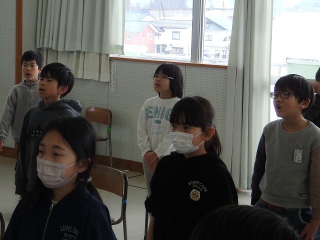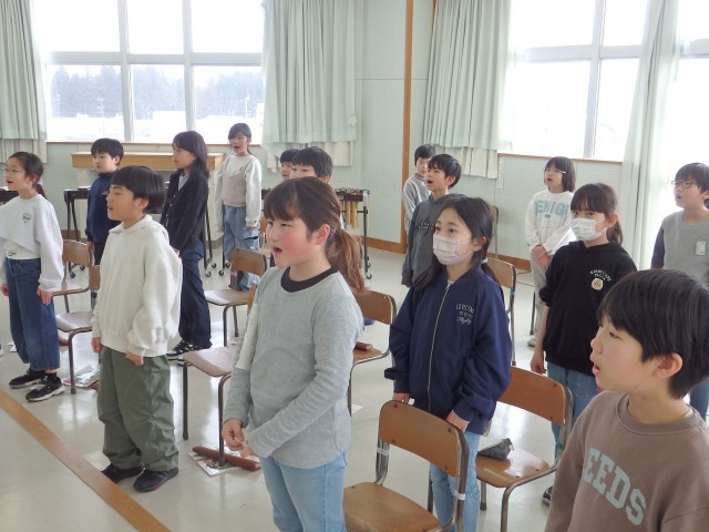 3年生の6時間目は音楽の授業でした。まずは卒業式で歌う「君が代」の練習をしました。3年生は毎回の全校朝会での校歌を大きな声で歌ってくれて、全校をリードしてくれています。卒業式でもその力を発揮してほしいです。「君が代」の練習が終わったら、「エーデルワイス」をリコーダーで演奏しました。全員の音色がピッタリ合っていて、とても上手でした。