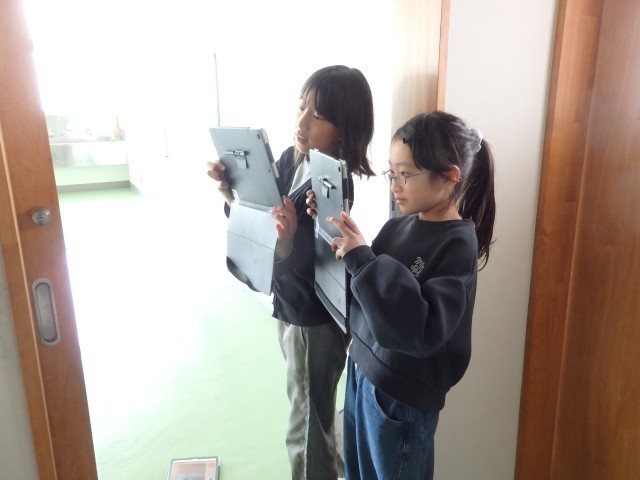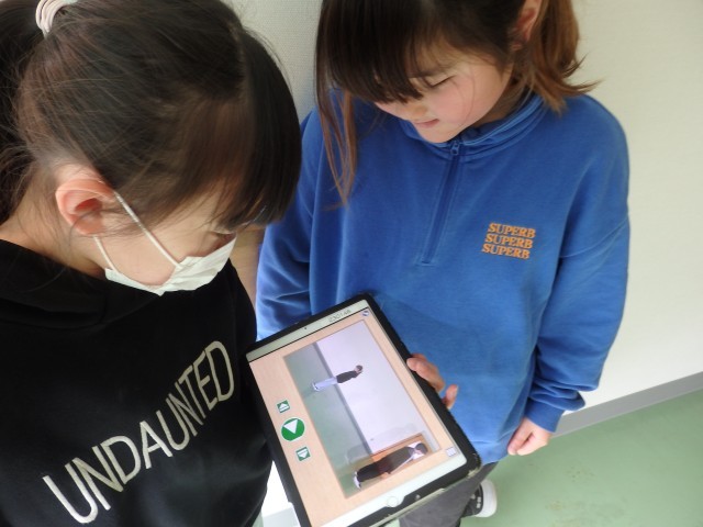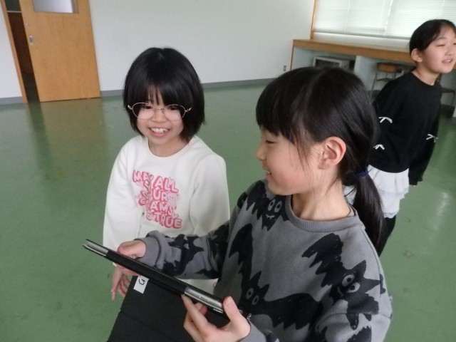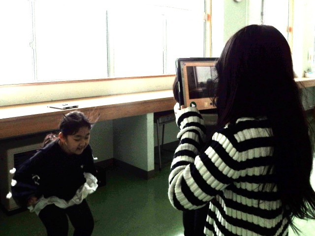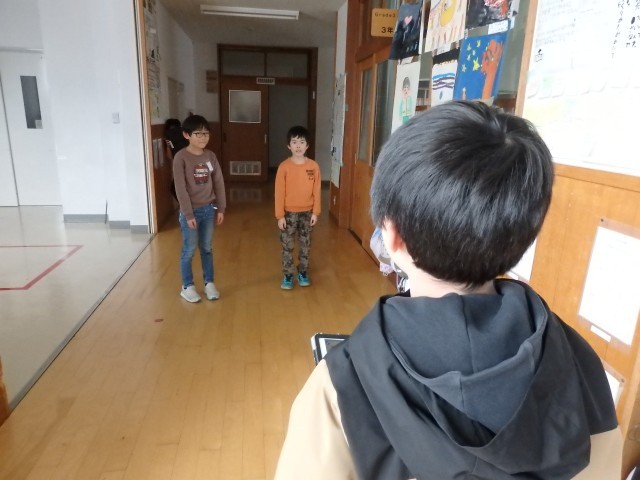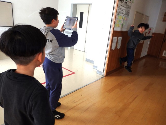 3年生の3時間目は図工の授業でした。ペアまたは3人グループでコマ撮り動画を作っていました。「KOMA KOMA」というアプリで人や物を少しずつ動かしながら写真を撮っていくと、あり得ないことが実行できているコマ撮り動画の完成です。考えを出し合って工夫して撮影していました。1枚目の写真の子たちが何をしているところなのか分かりますでしょうか。