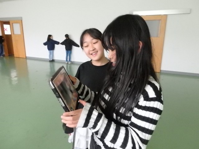 3年生の3時間目は体育の授業でした。ダンスの学習です。動画を見ながら、いろいろなステップを練習しました。「難しいよ~」と言いながらも、笑顔で楽しそ云為練習する子どもたちでした。
