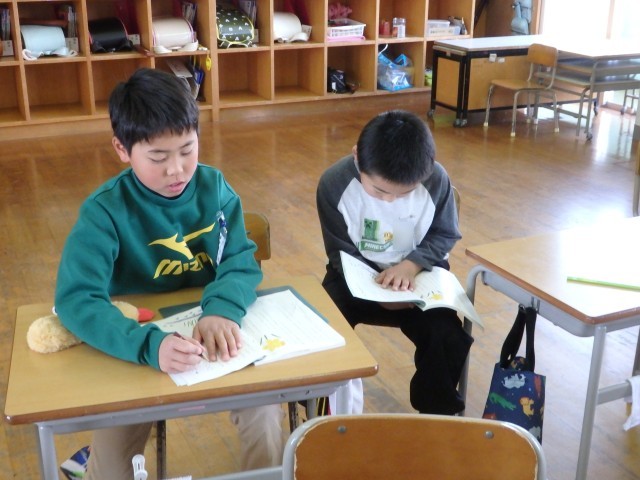 3年生の1時間目は国語の授業でした。「クラスの思い出作りのために」という学習です。実際に3年生の思い出を作るために、クラスでどんなことをしたらいいと思うかという提案文を書いていました。サッカー、バスケ、雪合戦、お絵かき伝言ゲーム、シール交換会、きつね狩りなどいろいろな提案文が書かれていました。自分の「やりたい」気持ちだけを書くのではなく、「それによってどんないいことがあるのか」などの理由もしっかり書いていました。
