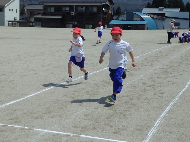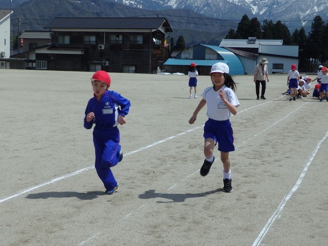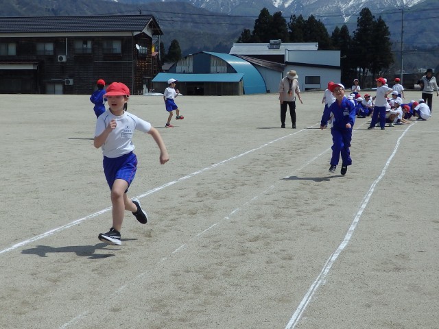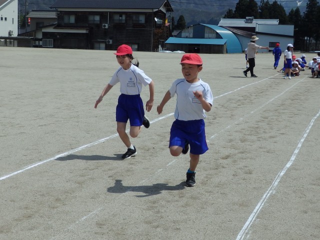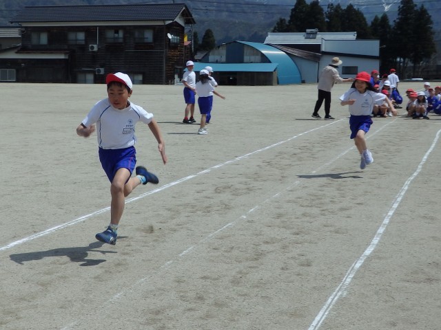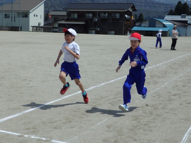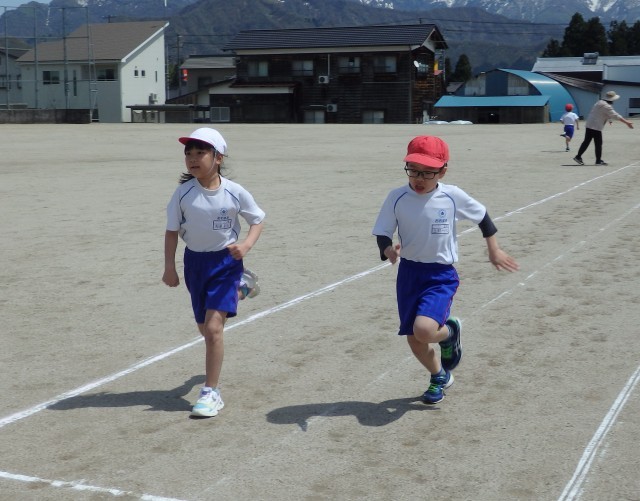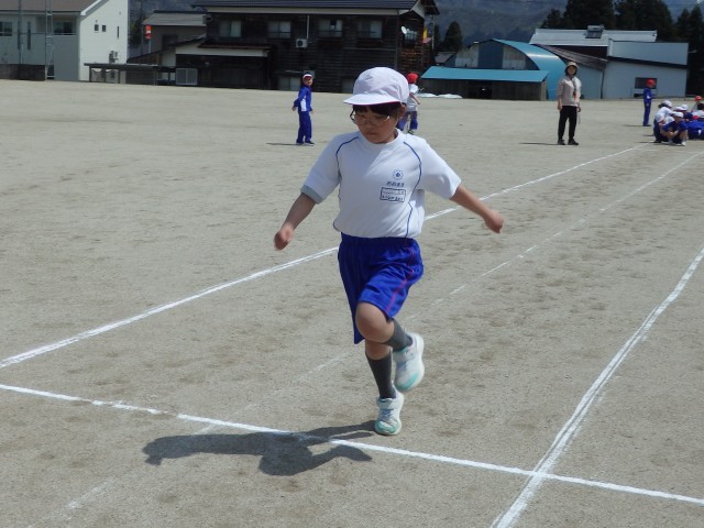 3,4年生合同の体育の授業。4年生に続いて3年生が50m走のタイムを計りました。走るフォームが去年よりも力強くなりましたね。去年より記録は伸びてたでしょうか。