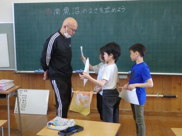 3年生は国語と総合のコラボでまとめてきた「南魚沼市の魅力」を紹介しました。3グループずつが出店形式で発表しました。紙を細く筒状にした手作りの指示棒を使ってお家の人に自分たちが調べた南魚沼の魅力を伝えることができました。クイズを取り入れて、お家の人に答えてもらっているグループもありました。また、発表を聞いた保護者の方からは付箋に感想を書いていただきました。子どもたちの励みになりますね。