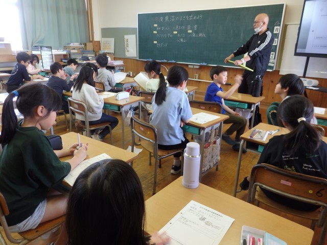 3年生の2時間目は国語の授業でした。「ゆうすげ村の小さな旅館」の学習です。物語全体を丸読みしていました。また、読みながら「時」を表す言葉や文章に線を引き、どこで場面が変わっているのか考えました。