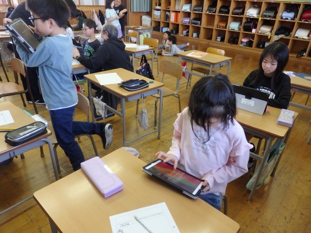 2年生の4時間目は国語の授業でした。漢字のテストを行っていました。終わった子からタブレットで学習したり、読書したりして過ごしていました。