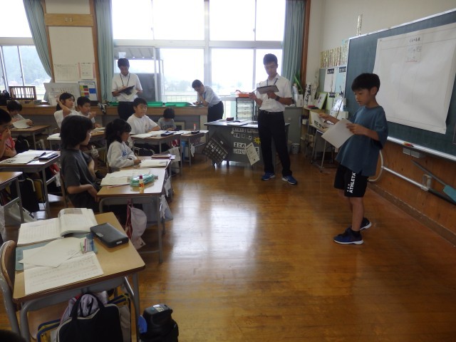 昨日の4年生の5時間目は総合の授業でした。学習発表会の準備と練習をしていました。自分たちで考えて意見を出し合い、小道具を準備したり練習を進めたりしていました。
