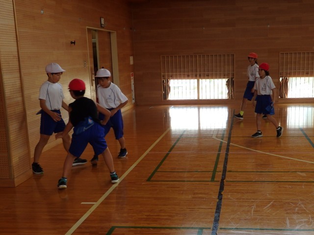 4年生の2時間目は体育の授業でした。今日からマット運動です。まずはウォーミングアップで「王様しっぽとり」をして走りまくりました。その後、マット運動を行いましたが、まずは寝転がった状態から反動をつけて手をつかないで立ち上がったり、2人で背中合わせになって手をつかないで立ち上がったりしました。そしてマット運動です。前転や後転などの技を練習しました。