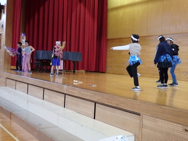 4年生は5時間目に学習発表会のステージ練習を行いました。まずは劇の練習です。総合の授業で学んだ「水」について発表します。かなりの壮大なストーリーです。また、役者揃いの4年生で、感情たっぷりで表現していました。