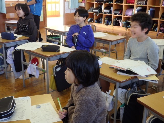 4年生の6時間目は学活の授業でした。みんなが誰とでも仲良く協力し合える、そんな居心地のいいクラスにするための活動をしていました。みんなで車座になって、昔のバラエティー番組で流行った「マジカルバナナ」を楽しんでいました。リズムに乗ってテンポよくできるかな?「みんなが」楽しく活動するために、「自分は」どうしたらいいのか考えることが大切ですね。