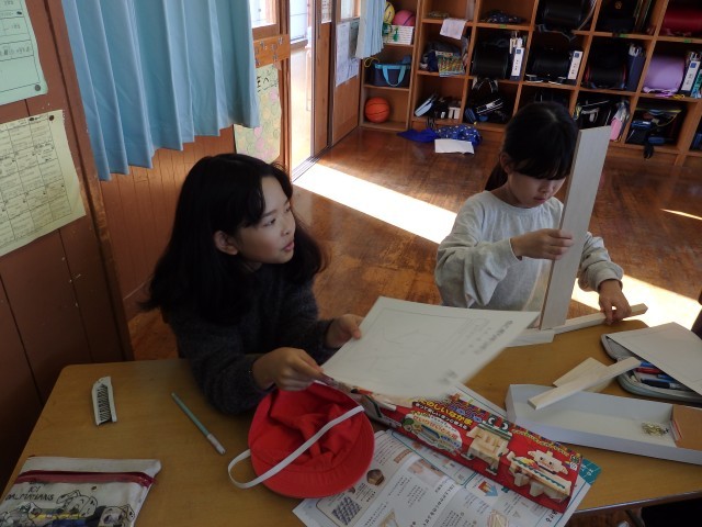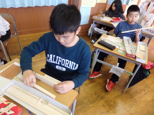 4年生の5時間目、図工の絵が完成した子たちは、学習発表会の小道具づくりです。どんな物が必要なのか、どういうものを作るのか、自分で考えて作っていました。何を作っているのかは本番のお楽しみです。