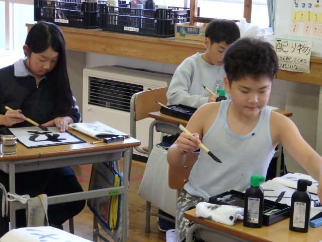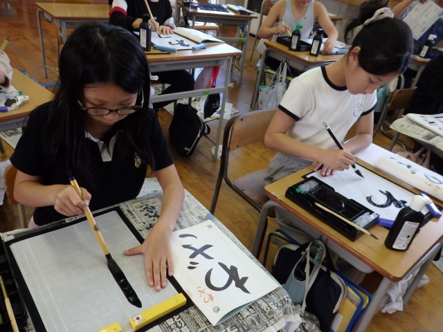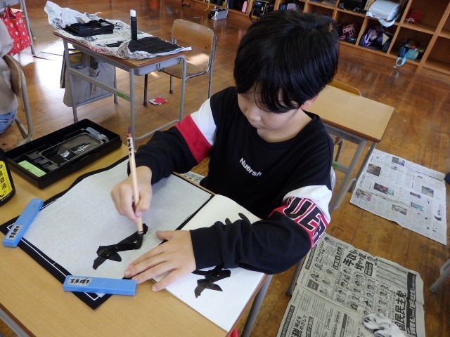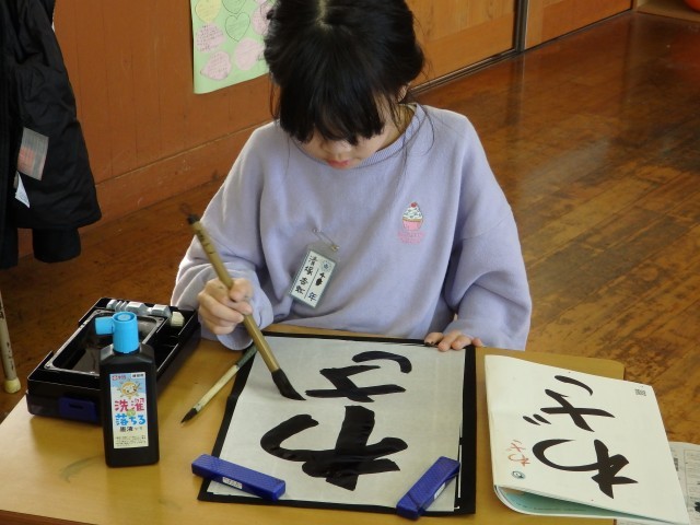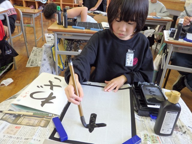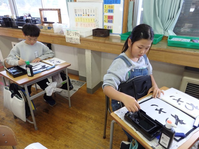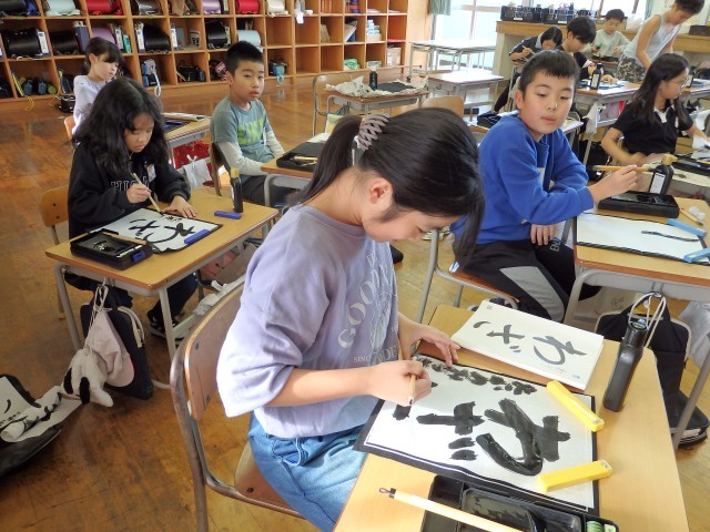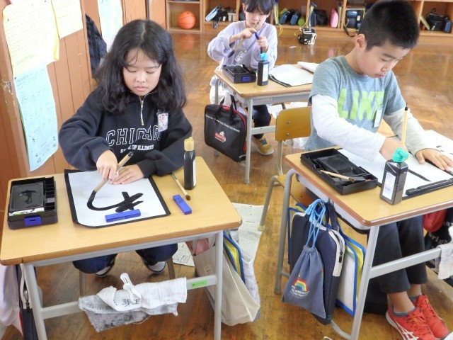 4年生の5時間目は書写の授業でした。「平和」という字を書きました。集中して一筆入魂です。教室に行ったら、すでに書き終わって片付けに入った子が何人もいました。すいません。