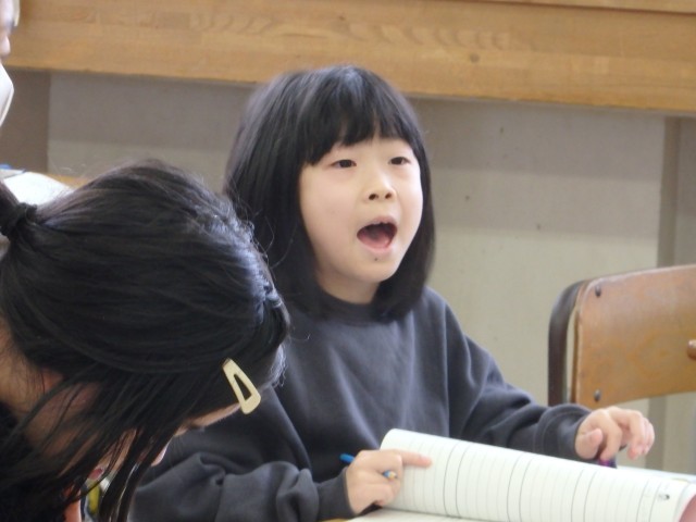 4年生の5時間目は音楽の授業でした。前半は「ハレルヤホッホー」という歌を元気に歌いました。途中で2つに分かれて、それぞれが別な歌詞で歌います。あまりに元気すぎて「運動会の応援歌じゃないんだから」と先生から言われるほどでした。後半はリコーダーで「オーラリー」という曲の演奏をしました。歌を歌ったときの元気のよさから一変、優しい音色で演奏できました。