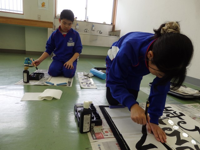 4年生の5時間目は書写の授業でした。明日の書き初め大会に備えて書き初めの練習です。明日の本番に向けて、一人一人が集中して取り組んでいました。