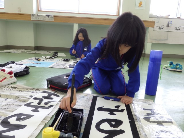 4年生は4時間目に書き初め大会を行いました。シーンとした静けさの中で、みんなが集中して取り組んでいました。とても上手に書けていました。
