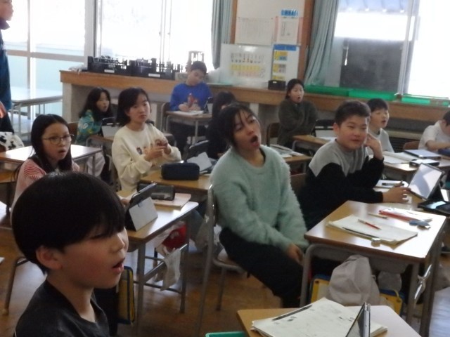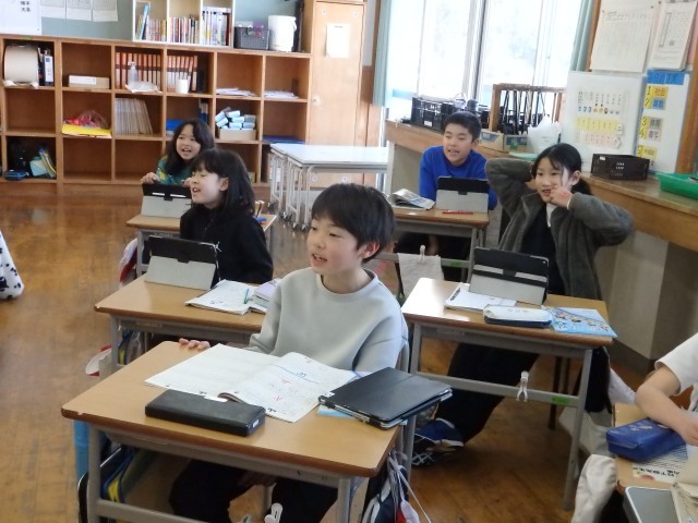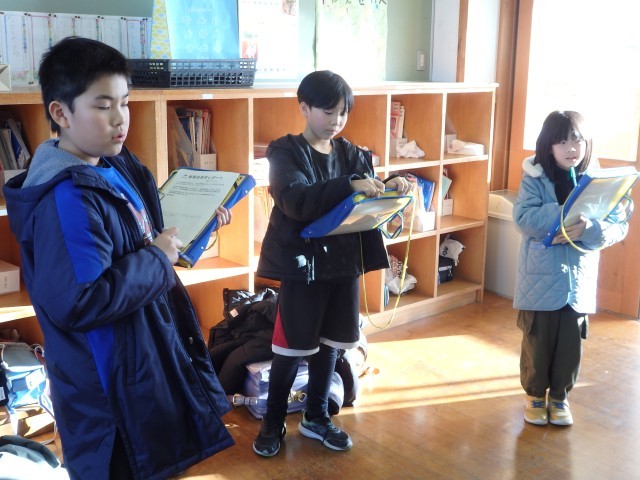 4年生の3時間目です。学級委員を選出しました。立候補者6人が前に出て、クラスの人たちからの「こんなときどうしますか?」などの質問に答えたり、「こんなクラスにしていきます」と決意を発表したりしていました。中学校での生徒会役員選挙で行う立ち会い演説会を思い出しました。質問や決意発表が終わったら投票によって2名の学級委員が決まり、みんなからの拍手を受けていました。高学年になるための準備期間の3学期です。学級委員を中心にしっかりまとまり、よりよいクラスを創り上げてほしいです。