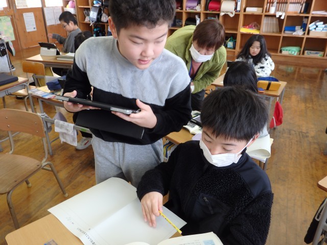 4年生の3時間目です。学級委員を選出しました。立候補者6人が前に出て、クラスの人たちからの「こんなときどうしますか?」などの質問に答えたり、「こんなクラスにしていきます」と決意を発表したりしていました。中学校での生徒会役員選挙で行う立ち会い演説会を思い出しました。質問や決意発表が終わったら投票によって2名の学級委員が決まり、みんなからの拍手を受けていました。高学年になるための準備期間の3学期です。学級委員を中心にしっかりまとまり、よりよいクラスを創り上げてほしいです。