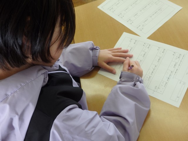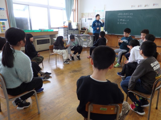 4年生の6時間目は学活の授業でした。毎週火曜日恒例のソーシャルスキルトレーニングを行っていました。まずは車座になって自己紹介ゲームです。1人ずつ「(有名人、芸能人)が好きな○○です」と順番に自己紹介をしていきますが、自分の前に自己紹介した人の内容を覚えて、全て言わなくてはいけません。思い出すために一生懸命考えている沈黙の時間も、じっと待ってあげることができました。続いて「無人島SOS」という話し合い活動です。無人島で救助が来るまでの2ヶ月間を生き延びるために、ナイフ、水、鍋、携帯電話など15個のアイテムから必要だと思うものを班で話し合って5個に決めます。他の班の人たちを一番多く納得させた班の勝ちです。さて、何を選んだでしょうか。