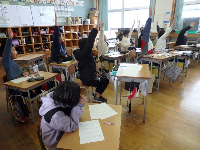 4年生は3時間目に親善スキー大会激励会のリハーサルをしていました。全体の進行がだいぶスムーズになりました。応援も一生懸命声を出していました。来週月曜日には4年生がリーダー役となり、1~5年生で応援練習を行います。4年生の力の見せ所です。期待しています!
