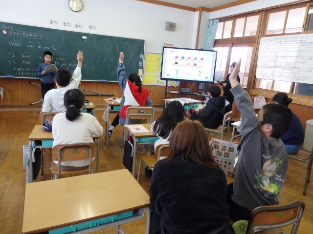 4年生の5時間目は学活の授業でした。「お楽しみ会」についての話し合いです。学級委員の2人が司会をして話し合いを進めていました。野球、ドッヂボール、バスケ、バレーなどの球技系やきつね狩り、鬼ごっこなどの定番のもの、さらには将棋、きもだめし、人狼ゲーム、百人一首といった案も出ていました。多数決で2つに絞り、チーム決めは電子黒板を使ってくじ引きで。ワクワクドキドキの笑顔でくじのゆくえを見守る子どもたちでした。