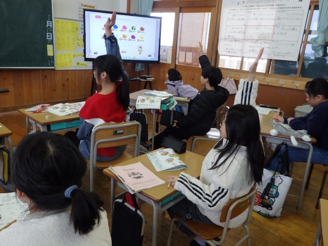 4年生の5時間目は国際科の授業でした。まずはALTの先生とアルファベットを組み合わせた「er」の読み方について学習しました。player、runner、driverなどでよく使われる音ですね。その後、iPadのクイズアプリ「カフート」を使って、2学期の最後に学習していたアルファベットの小文字の復習をしました。「nの次の文字は?」「10番目の文字は?」などの問題に早く正確に答えようと一生懸命でした。正解してガッツポーズ、間違えて頭を抱え込む子がたくさんいました。